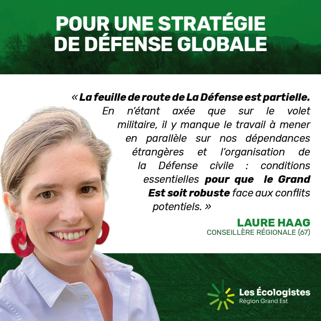 Cette semaine la Région Grand Est a adopté sa stratégie défense afin d’apporter sa contribution aux exigences européennes et nationales. Notre groupe a proposé une contribution à ce débat. Face aux turbulences mondiales, nous avons proposé une redéfinition de la défense, au-delà de la seule dimension militaire. Ce concept de « défense totale » vise à garantir la paix, la démocratie, l’habitabilité de la Terre, et la justice sociale et environnementale. Malheureusement cette contribution n’a été ni discutée sur le fond ni incluse dans le rapport final, ce qui nous a conduit à ne pas prendre part au vote . En voici les grandes lignes.