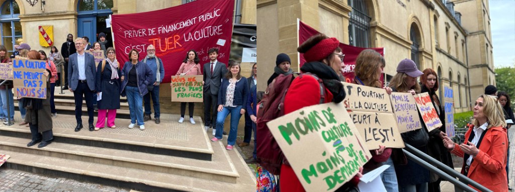 En amont de l’ouverture de la plénière, nous sommes allés soutenir les acteurs·trices de la culture, mobilisé·es devant l’Hôtel de région pour dénoncer les baisses budgétaires prévues par la majorité régionale.