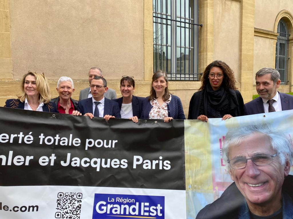 Lors de la pause méridienne, l’ensemble des élu·es s’est rassemblé devant l’entrée de l’Hôtel de Région à Metz afin de décrocher symboliquement la bâche en soutien aux deux otages des geôles iraniennes enfin de retour chez eux. Nous nous réjouissons pour leurs proches et souhaitons aux ex-détenus de trouver les conditions favorables à leur reconstruction.