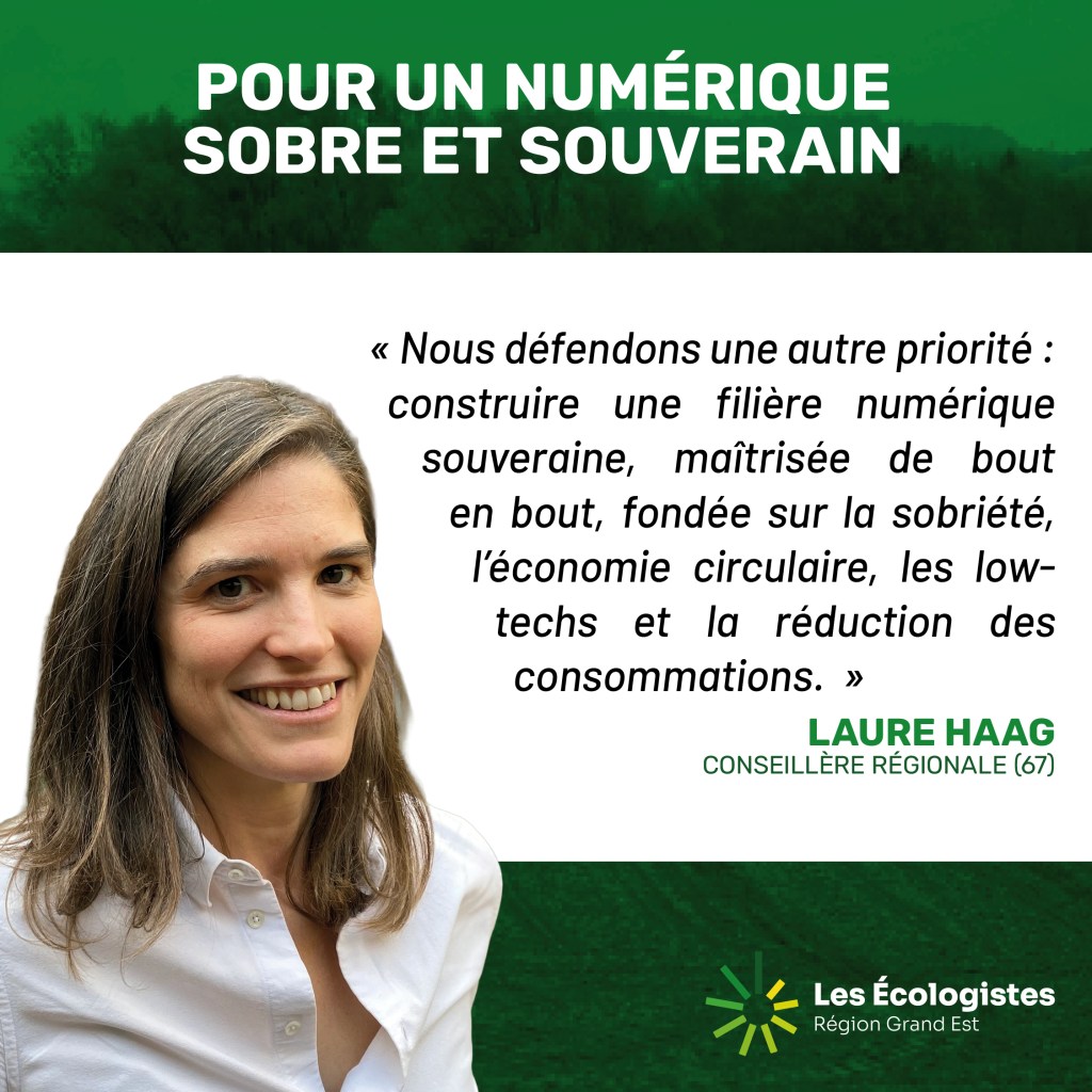 Lors de son intervention sur la stratégie numérique régionale 2026-2030, Laure Haag a critiqué un projet privilégiant la compétitivité au détriment de l’écologie. Bien que le diagnostic soit pertinent, elle déplore que le « numérique responsable » reste secondaire.