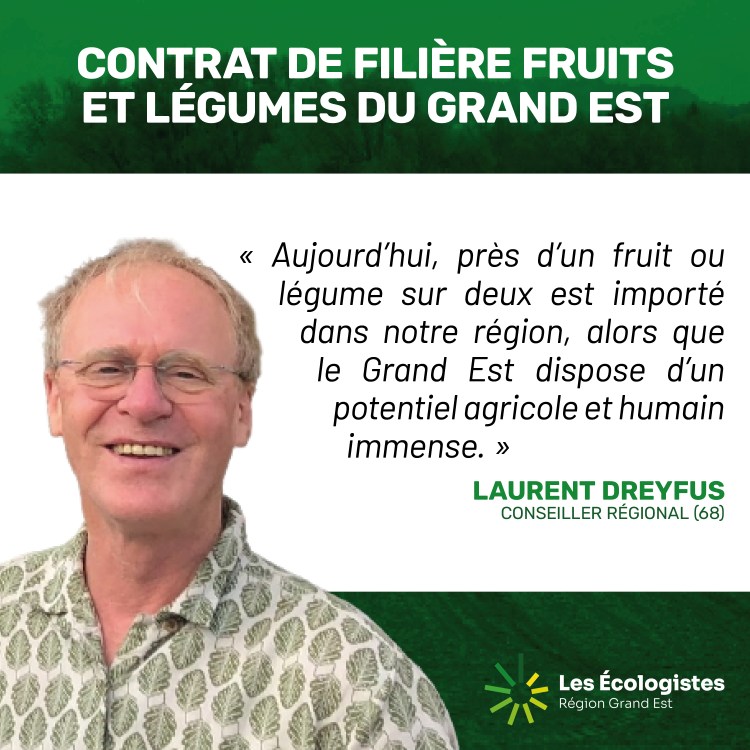 Laurent Dreyfus a analysé le contrat de filière fruits et légumes régional, déplorant que trop de produits soient encore importés. Il a souligné la timidité de la transition écologique, notamment dans le secteur légumier, et a appelé à une reconquête de la souveraineté alimentaire.