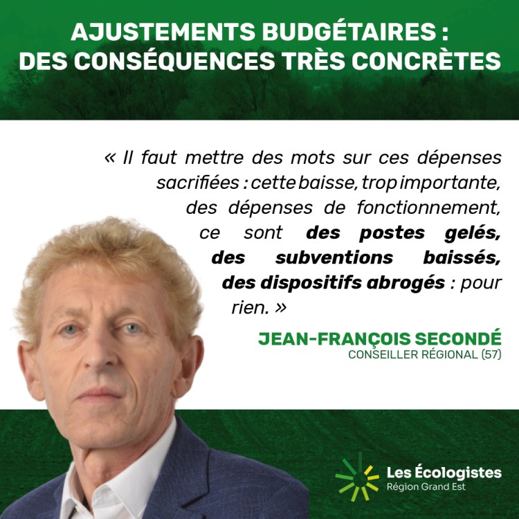 Il a ensuite énuméré une série de « coups de rabot » touchant des secteurs vitaux : le gel du budget des lycées, l’augmentation des tarifs TER, la baisse des subventions à la culture et le désengagement de la rénovation énergétique. Enfin, il a opposé à cette gestion comptable l’ambition des écologistes, qui ont prôné une région plus protectrice face aux urgences sociales et climatiques.